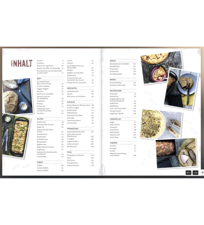 Läuft dir beim Gedanken an frisch gebackenes Brot auch das Wasser im Mund zusammen? Dann backe es doch am besten selbst – und zwar outdoor! Das Petromax Backbuch Draußen Backen trägt hierfür auf 144 Seiten eine Menge toller Rezepte zusammen. Diese sind übersichtlich in einzelne Kategorien gegliedert, beispielsweise Brot, Kuchen, Herzhaftes, Pfannkuchen, Pizza, Snacks u. v. m. Darüber hinaus gibt das Backbuch hilfreiche Tipps rund um das Thema Backen im Freien und die Verwendung von gusseisernem Kochgeschirr.